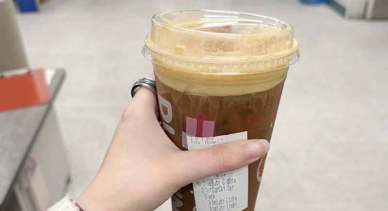A large cup of this drink crosses the 50-gram sugar mark before any modifications. The peppermint and mocha syrups combine to form the signature holiday flavor, and the drink often feels less heavy than frozen versions, which creates a misleading impression. Even without extras, the sugar count places it among the stronger picks on Dunkin’s holiday lineup.