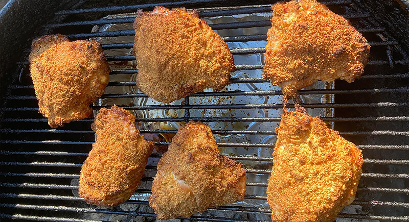 No deep fryer? No problem. Clever home cooks figured out how to mimic that fried crunch on the grill. The trick was a heavy flour coating, indirect heat, and a closed lid. It came out crispy, juicy, and way less messy.