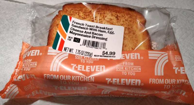 It sounds like a carnival dare—French toast swirled with cinnamon sugar, stacked with sausage, egg, and cheese—but it works. The bread turns custardy when microwaved, and the swirl gives it a pancake-and-syrup vibe without turning the whole thing into dessert.