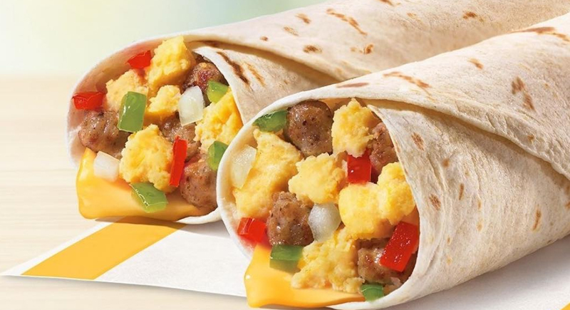 Wendy’s version packs grilled sausage, eggs, potatoes, and cheese sauce into a filling wrap. It hits the spot when it’s fresh off the line, though the potatoes can take over if it sits too long. Even so, it’s a solid choice from a chain that knows how to do breakfast right.