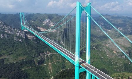 In China’s Guizhou province, the newly opened Huajiang Grand Canyon Bridge offers visitors the chance to enjoy coffee among the clouds....