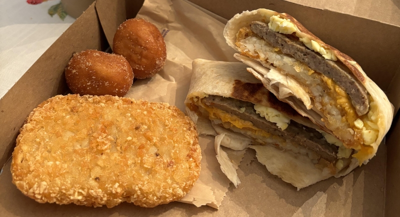 The hash browns here are untouchable and go well with the Croissan’wich. Small and perfectly crisped, they’ve topped taste tests as the crunchiest potatoes you can buy before 10 a.m. Those golden coins of potato goodness keep the chain relevant in the breakfast conversation.