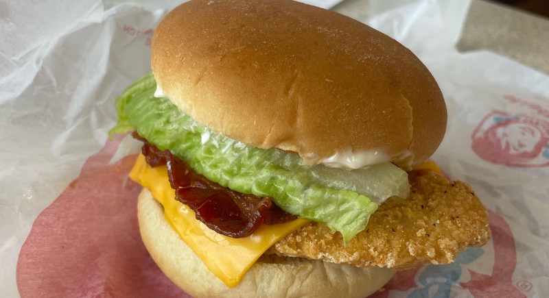 Named after the founder, Dave’s Single serves as the standard bearer for the current burger lineup. It features a quarter-pound fresh beef patty, lettuce, tomato, pickles, onions, cheese, ketchup, and mayo on a toasted bun. It was marketed as a step above typical fast food burgers.