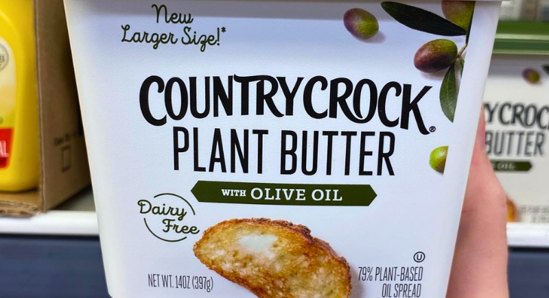 With plant-based eaters in mind, Country Crock aimed for a buttery dupe and missed the mark. There’s a whisper of olive oil, but the main flavor is blank. It’s not technically margarine, and it doesn’t quite hit as butter either.