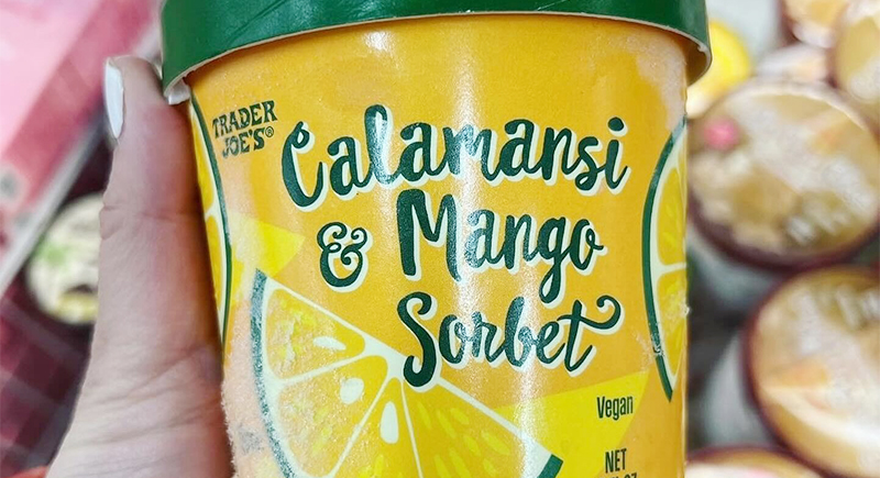 Trader Joe’s Calamansi & Mango Sorbet brings the bright flavors of the Philippines. This tangy, vegan sorbet perfectly blends the tartness of Calamansi, a lime-like citrus, with the sweet, tropical taste of Mango. You can pair it with double cream brie or a hearty meal.