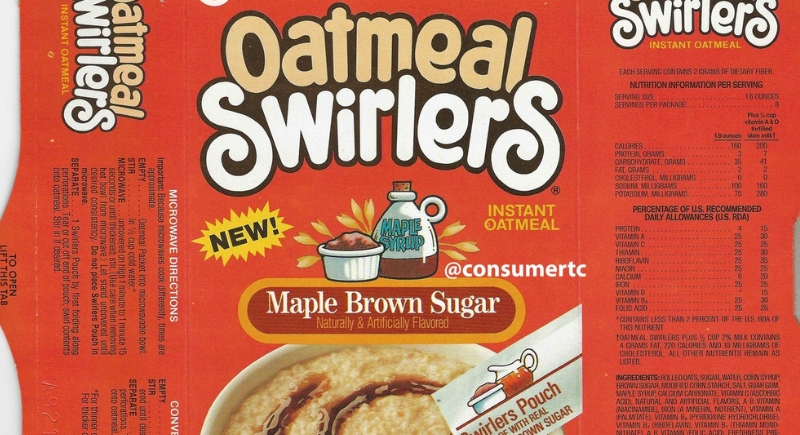 Oatmeal got a brief upgrade in the late ’80s when General Mills introduced Swirlers: packets of plain oats accompanied by tubes of jelly meant for swirling faces or tic-tac-toe boards. The concept invited creativity but didn’t stick. Parents likely got tired of the syrupy mess.