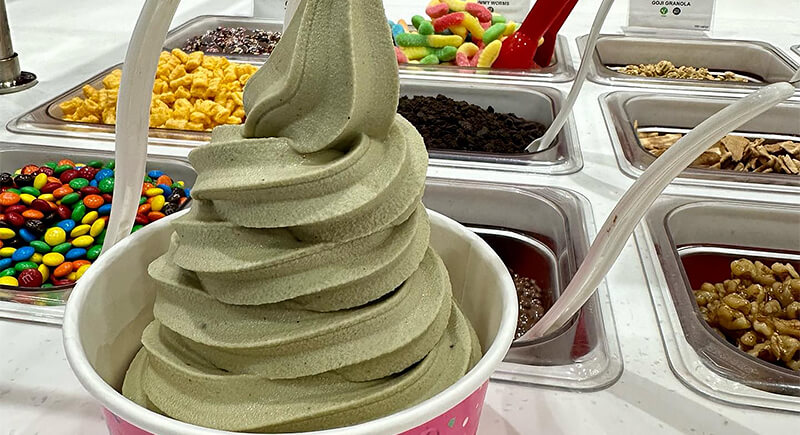 This California-based Mediterranean chain took its usual Greek yogurt and swirled in ribbons of pistachio butter. Kataifi adds texture, while a chocolate shell and pistachio cream drizzle finish it off. The froyo aligns with the brand’s focus on regional ingredients and taps into a trend that resonates with traditional dessert fans and TikTok-watchers alike.