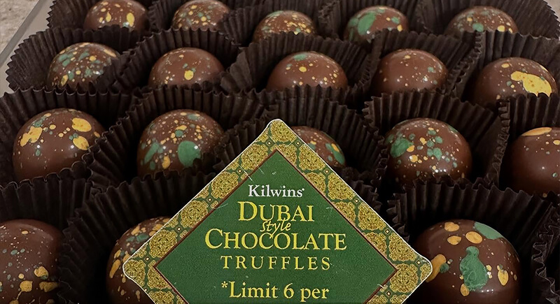 Kilwins leaned into its confectionery roots by rolling out truffles packed with pistachio cream and kataifi and dipped in milk or dark chocolate. Each one is decorated with a green and yellow top for visual flair. Kilwins has over 175 shops and one of the U.S’s widest reaches.