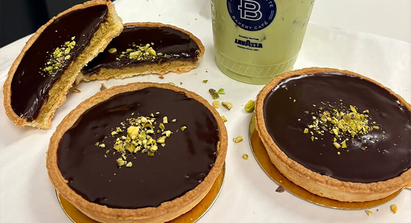 Pastry fans got their fix through this tart, which skips doughy crusts for something more refined. It’s filled with pistachio cream and kataifi, then sealed with a layer of chocolate ganache. Crushed pistachios sit on top for added bite. It upscaled the trend without losing the viral ingredient formula.
