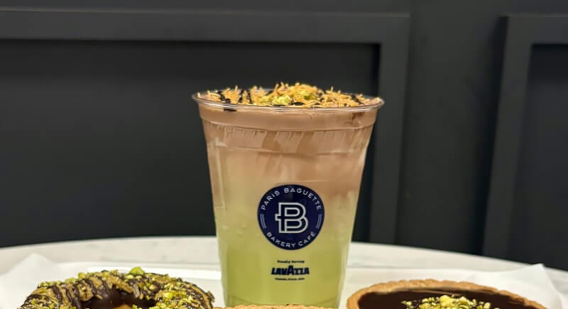 Starbucks hasn’t formally added Dubai chocolate to its menu, but a customer-created version went around. The drink involves an iced matcha latte, pistachio syrup (available seasonally), and chocolate cream cold foam. While it skips the kataifi, it replicates the flavor and color palette pretty closely.