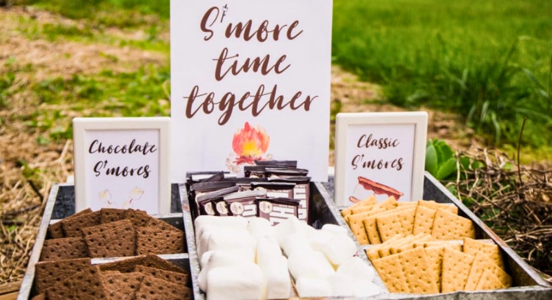 Setting up a s’mores station gives attendees a chance to tap into old memories, like roasting marshmallows during childhood camping trips with family. Keep it simple with graham crackers, marshmallows, chocolate bars, and skewers near a fire pit or grill. It feels familiar and ends the night on a warm, low-key note.