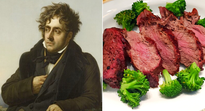 This French steak dish owes its name to François‑René de Chateaubriand, a 19th-century writer and diplomat who clearly ate well. His personal chef is said to have invented roasting a thick center-cut beef tenderloin and serving it with a rich wine sauce and vegetables. It’s still a favorite in classic French restaurants.