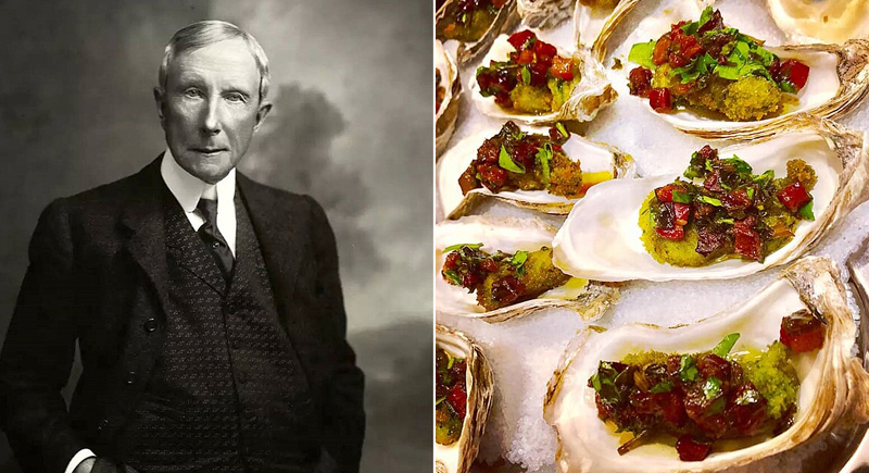 Antoine’s in New Orleans wanted something that rivaled escargot in drama and decadence. The result was a baked oyster dish cloaked in green sauce, possibly spinach-based, and named after John D. Rockefeller, who was the wealthiest American alive at the time.