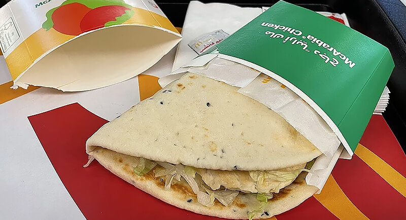 It has different names depending on where it’s sold. In the Middle East, it’s called the McArabia. In other regions, it’s the McOriental, McKebab, or Grilled Chicken Foldover. Regardless of the name, the sandwich usually features grilled chicken, lettuce, tomato, and a garlic-based sauce inside a pita-style wrap.