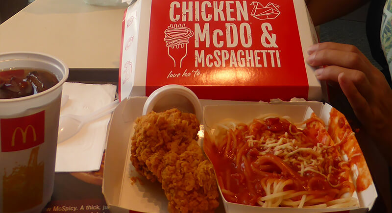 Only in the Philippines could fried chicken and spaghetti become a fast-food duo. The McSpaghetti plate combines sweet-style pasta with tomato sauce, ground beef, and cheese, paired with a piece of crispy chicken. It flourished abroad, especially for families who treat fast food like comfort food with a twist.
