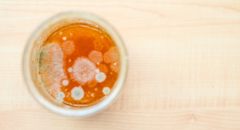 Sticky jars or tacky bottle caps are often signs of leaks or fermentation. A broken seal can let in air and bacteria. Honey and syrup are especially prone to this, and once left too long, they’ll attract bugs.