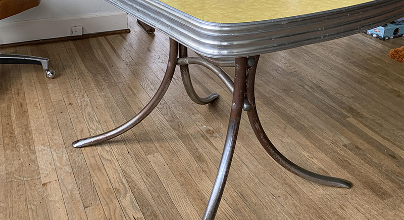 Shiny metal finishes were the rage, and many chair and table legs were plated with hexavalent chromium. The compound is now recognized as a carcinogen and a respiratory hazard. Flaking coatings and household wear resulted in toxic dust buildup around the floors, particularly where small children played.