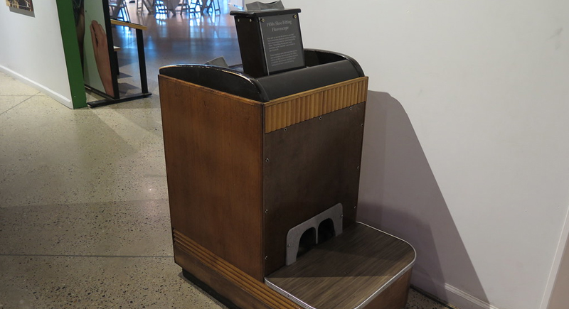 Shoe stores used fluoroscopes to show how feet fit inside shoes. Kids stood on platforms while real-time X-rays illuminated their bones, without protective shielding. Repeated exposure raised the risk of radiation burns and later cancers. The practice was banned in most states by the 1970s.