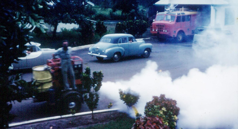 Early aerosol insect foggers were pumped with DDT, chlorinated hydrocarbons, and other volatile chemicals. Entire homes were fogged with windows closed, often with pets and people still inside. These toxic clouds contaminated furniture, toys, and food surfaces. Long-term exposure was linked to endocrine disruption, neurological damage, and cancer.