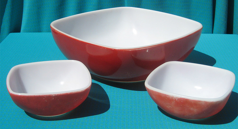 Decorative patterns on 1950s Pyrex were painted with lead-based enamels that flaked over time. These bright, cheerful prints could wear off onto food or washing water. Though the glass was heat-resistant, the colored designs were not. Testing has found elevated lead levels in vintage dish sets.
