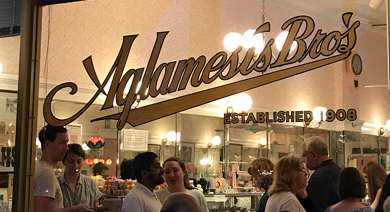 Aglamesis Bros. has a distinct early 20th-century feel, probably due to the tiled floors, marble counters, and Tiffany-style lamps. The shop was founded by two Greek brothers and still uses old-school methods, including hand-packed pints and seasonal flavors. Its Oakley location, operating since 1913, serves chocolate-dipped confections and creamy scoops in silver dishes. The ice cream is made with Midwestern dairy, and their coconut chip is a local favorite.