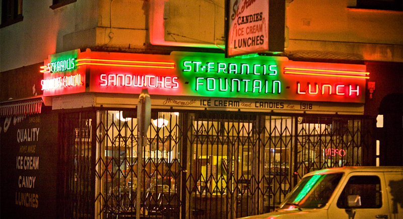 San Francisco’s oldest ice cream parlor still stands at 24th Street, with its checkerboard floor and neon glow intact. It was originally a Greek family-run soda fountain and candy shop before it transformed into a diner. Their milkshakes come in classic and vegan varieties, served in retro glassware. New owner Mantakarn Seenin continues its legacy under the city’s Legacy Business Registry.