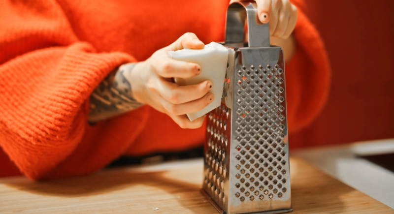 Even after a wash, cheese graters may have food stuck in the holes. The spray jets can’t fully reach into those sharp, narrow spaces. As that buildup hardens, it becomes harder to clean and may transfer old flavors into new food. This is why it is best to wash graters by hand with a stiff brush or sponge immediately after use.