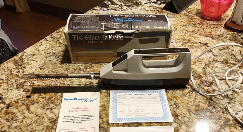 Thanksgiving dinners in the ’70s felt incomplete without the electric carving knife humming away on the counter. It sliced turkey, ham, and roasts with impressive precision and far less effort than a traditional knife. With today’s love for entertaining and meal prep, this appliance could reclaim its spotlight.