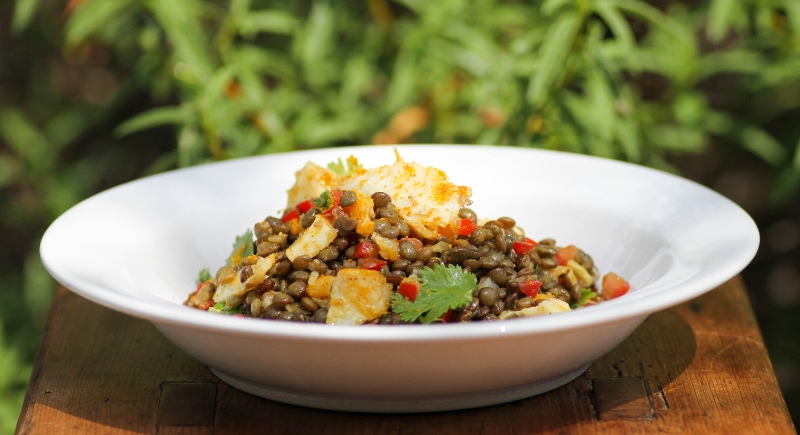 You don’t need a kitchen to pull this together. Open a can of lentils, drain it, and mix with canned tomatoes, olive oil, and a little seasoning. The result is earthy, bright, and filling enough to count as a full meal. It stays good for hours, making it easy to eat well anywhere.