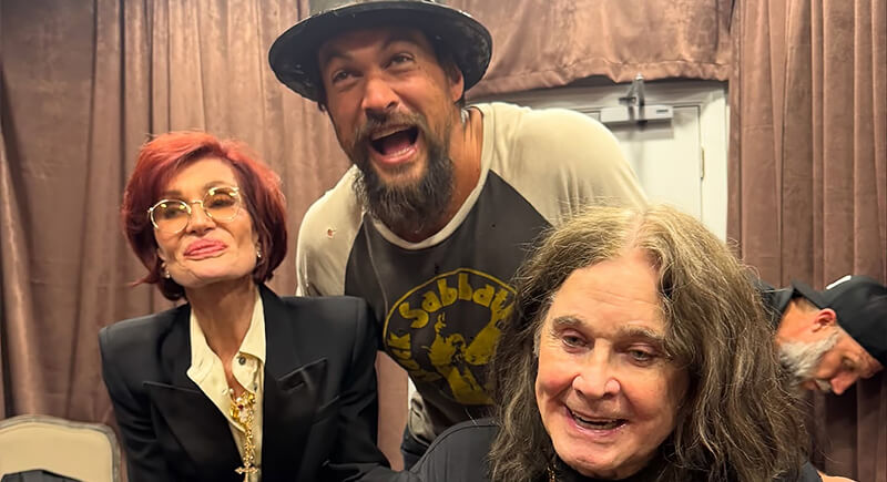 Jason Momoa hosted the Back to the Beginning event, and backstage photos show him with Ozzy and Sharon. The unlikely pairing of a Hollywood star and a rock pioneer became one of the night’s quirkiest details.