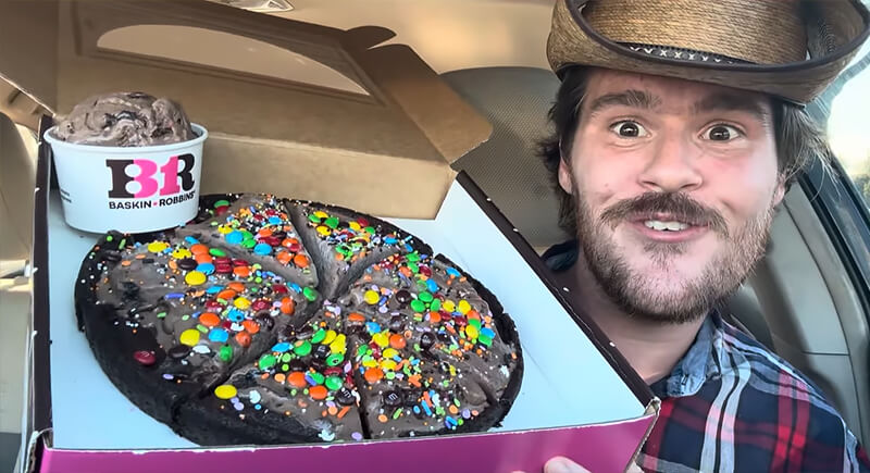 This dessert pizza features brownie batter ice cream with rainbow chips and brownie pieces on a double fudge brownie crust. It’s topped with sprinkles and M&M’s, then drizzled with fudge. It launched as the October flavor of the month and also got a 20% discount for rewards members.