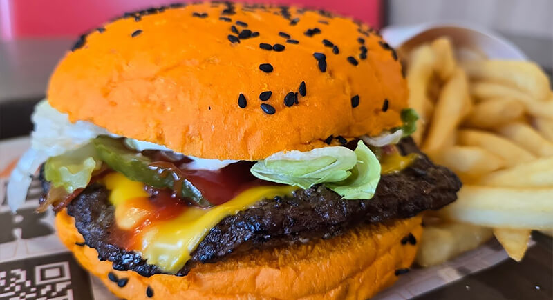 Burger King is leaning into Halloween with a seasonal spin on its classic Whopper. The burger comes on an orange bun topped with black sesame seeds for a pumpkin-inspired look. It’s paired with limited sides like Mummy Mozzarella Fries and Vampire Nuggets, all served in a coffin-shaped box that completes the theme.