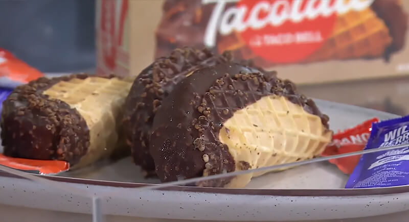 Salt & Straw and Taco Bell reimagined the Choco Taco using a cinnamon-ancho ice cream base, a waffle cone shell, and puffed brown rice for crunch. It’s dipped in chocolate and, if desired, can be topped with sauces like Mango Jalapeño or Wildberry Cinnamon.