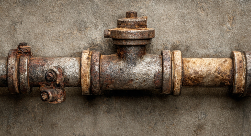 Not all damage is visible. Inside the walls, corrosion quietly eats away at metal pipes as they react with oxygen, minerals, or acidic water. Rust-colored water or reduced pressure are early warning signs. Over time, corrosion thins the metal until it gives out. Replacing old sections with corrosion-resistant copper or PEX piping can help stop this slow decay.