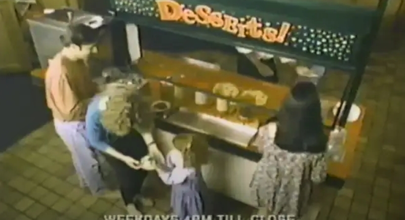 Popular buffet desserts included warm cinnamon sticks with icing, soft-serve vanilla ice cream, and occasionally chocolate pudding or fruit cobbler. The cinnamon sticks ran out quickly and prompted a short wait for the next tray. These items were rarely featured in ads but became regular favorites.