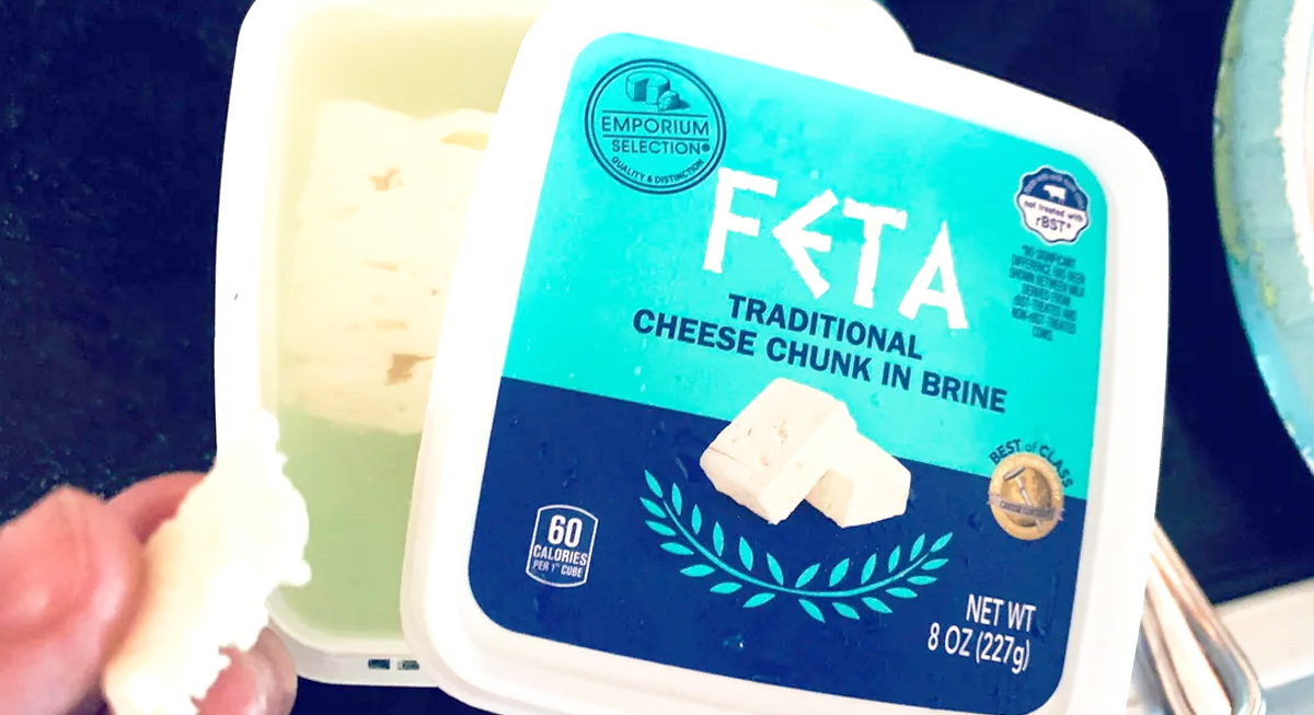 Aldi’s cheese section is present in nearly every chef roundup. Shredded Swiss and Gruyere blends melt cleanly and add depth that standard cheddar can’t match, especially in eggs, skillet meals, or baked dishes. There’s also a tomato-and-basil feta block, priced around $3.85, that can add depth to pasta and dips with minimal effort.