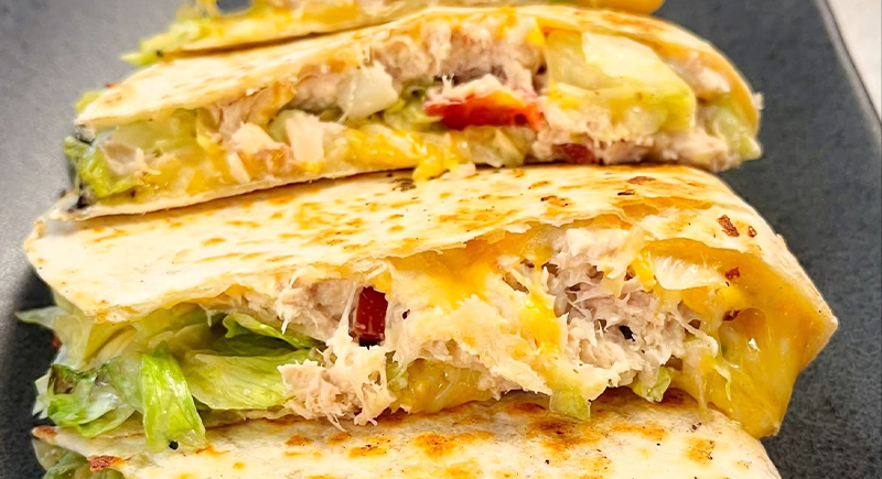 This meal is a modern twist on the old tuna melt, using tortillas instead of bread. Canned tuna mixed with mayo and shredded cheese is folded into a tortilla and crisped in a pan. Canned tuna sales often spike during economic dips, and recipes like this show why.