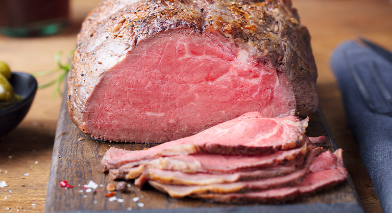 This low and moist heat helps the meat stay tender and adds depth to the flavor. Once finished, the roast must rest. Chilling it for a short time is even better because the firmed-up texture makes it possible to shave slices almost paper-thin. A long, sharp knife or slicer works best. Keep in mind that cutting against the grain ensures the meat won’t be stringy.