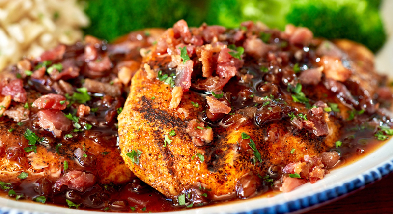 To break from its seafood-heavy lineup, the eatery added Maple Glazed Chicken. The dish paired a pecan-crusted chicken breast with a maple glaze and came with cinnamon-flavored mashed sweet potatoes.