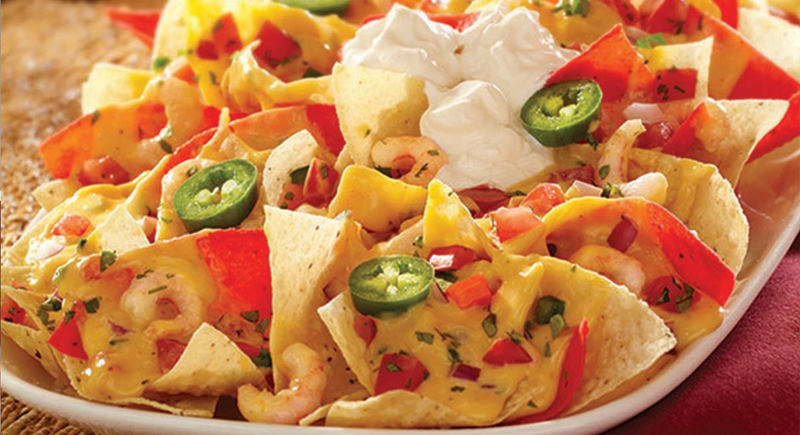 This appetizer was introduced in the late 2000s using langostinos before switching to shrimp. It featured shrimp atop tortilla chips with pepper jack cheese, avocado, mango salsa, and lime crema. It disappeared around 2014 during a menu refresh when the restaurant reportedly replaced it with Brussels sprouts on some menus.