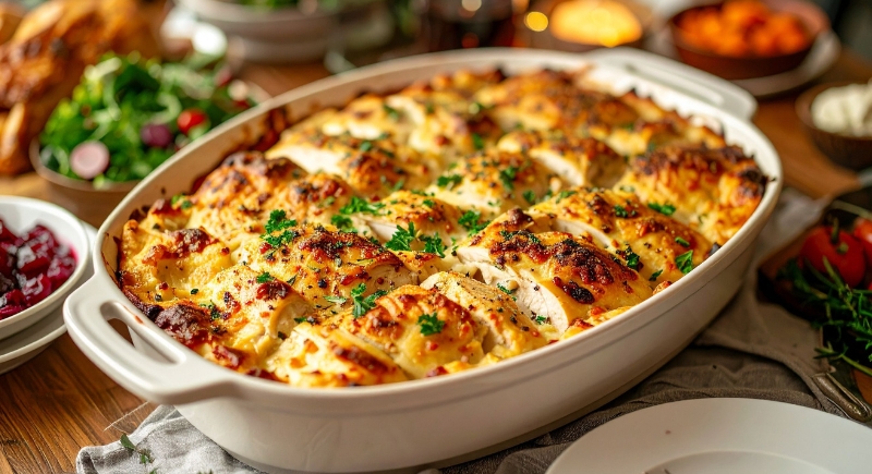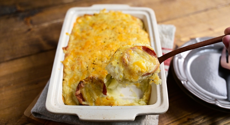 The recipe has traveled far from potlucks and church basements. What was once made with frozen hash browns, canned soup, and a handful of cheese now bakes with baby potatoes, fontina, and thyme. It may look upscale, but one bite brings back the same creamy, crowd-pleasing comfort that never needed an update.