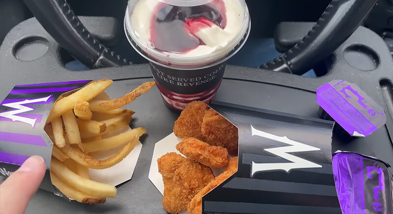 Wendy’s partnered with Netflix’s Wednesday to roll out a spooky limited-time meal: a four-piece nuggets, fries, two mystery-flavored dipping sauces, and a black cherry “Raven’s Blood” Frosty. It’s available for $10 and launched alongside the second season of the show.