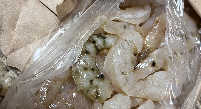 Shrimp should have translucent gray or pink shells that become bright when cooked. Scan them carefully before buying. Black spots on the shell or yellowing flesh are signs of oxidation or age. Shrimp should also feel firm, not slimy, and smell faintly like the ocean instead of something stronger.