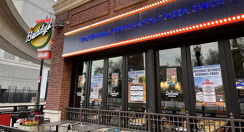 Buddy’s Detroit-style pies are the blueprint for the entire genre. The caramelized cheese edge makes the corner slices golden. The toppings are hearty, and sausage, pepperoni, and green olives get serious love. This restaurant is the standard everyone else follows.
