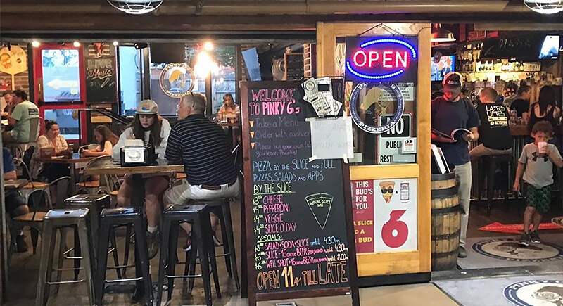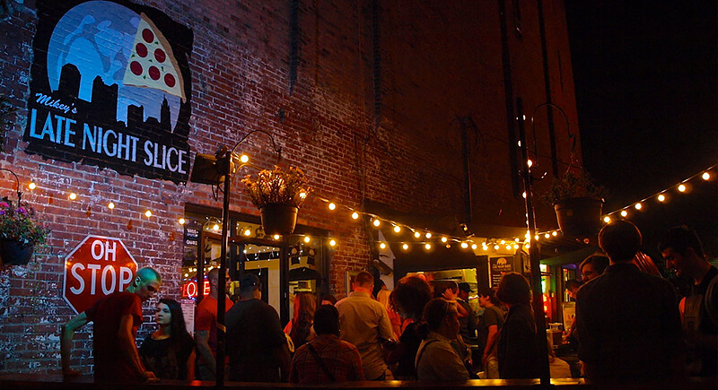 Columbus nightlife isn’t complete without a greasy, glorious piece from Mikey’s. They sling big, cheesy pies until the early hours, paired with irreverent names and plenty of ranch on the side.
