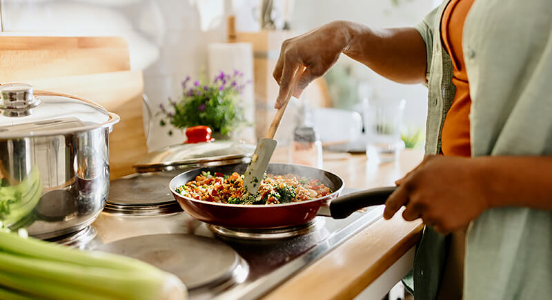Having the basics on hand makes it easier to make healthy meals quickly, even when you’re busy. Stick to simple foods that are easy to cook, such as brown rice, plain oats, frozen vegetables, and canned beans. These options don’t have any extra sugar or salt added. They save time and serve up nutrition.