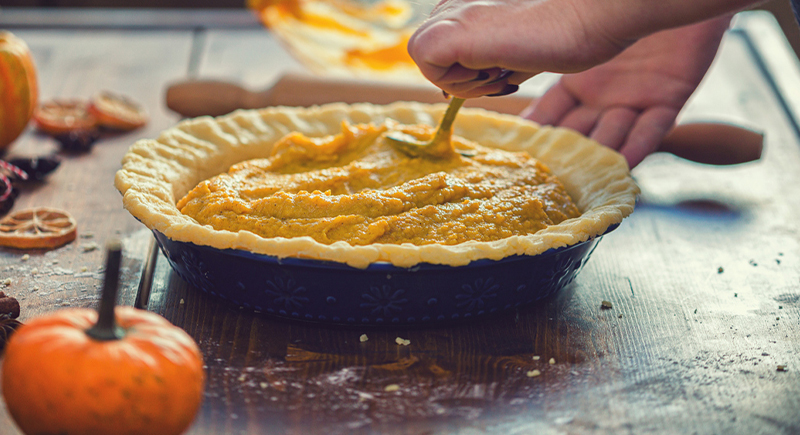 How the pies are made matters just as much as what goes into them. Dough is prepared in-house, portioned, and pressed into tins using specialized equipment. The pumpkin filling is mixed in large batches and dispensed mechanically so each pie contains the same amount.