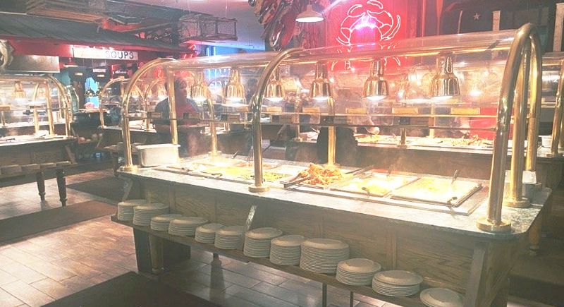 Shrimp and crab carry the buffet. Shrimp is fried, steamed, scampi-style, and peeled for fast refills, while snow crab legs anchor the room, supported by sauces and sides that encourage repeat trips without slowing traffic. The consistency explains why guests return. Regulars know what the shrimp tastes like and how fast the crab comes back out.