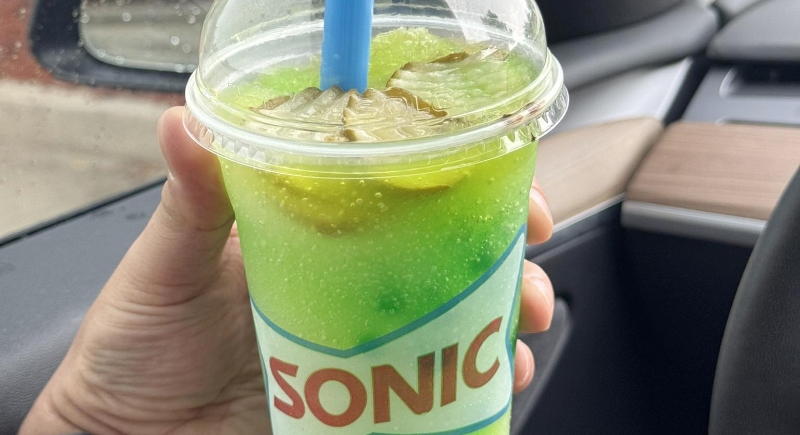 Sonic knows how to get reactions, and the Picklerita Slush delivers that jolt with its bright green color and pickle juice base. The chain partnered with Grillo’s Pickles to create a frozen mix of lime syrup, briny bubbles, and pickle chips. The drink attracts curious crowds, especially those seeking unusual treats.