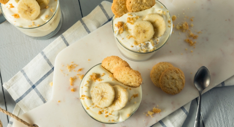 Banana Pudding combines vanilla ice cream with banana flavoring and crushed vanilla wafer cookies. The crushed wafer pieces soak up the liquid as the shake sits, puffing up slightly and giving it a thicker, heavier texture. Food writers consistently rate the texture as closer to soft ice cream than a drink.